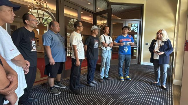 Covid-19病毒在中国爆发初期,中国共产党及其领导人习近平刻意隐瞒病毒,导致该病毒在全世界肆意传播、造成无数无辜民众丧生,该病毒巡游车队横挂向中共追责、索赔横幅沿途向美国民众讲述真相,受到美国民众的大量支持,访问结束后,车队人员向该馆人员讲述中共向世界人民犯下的人权罪行。