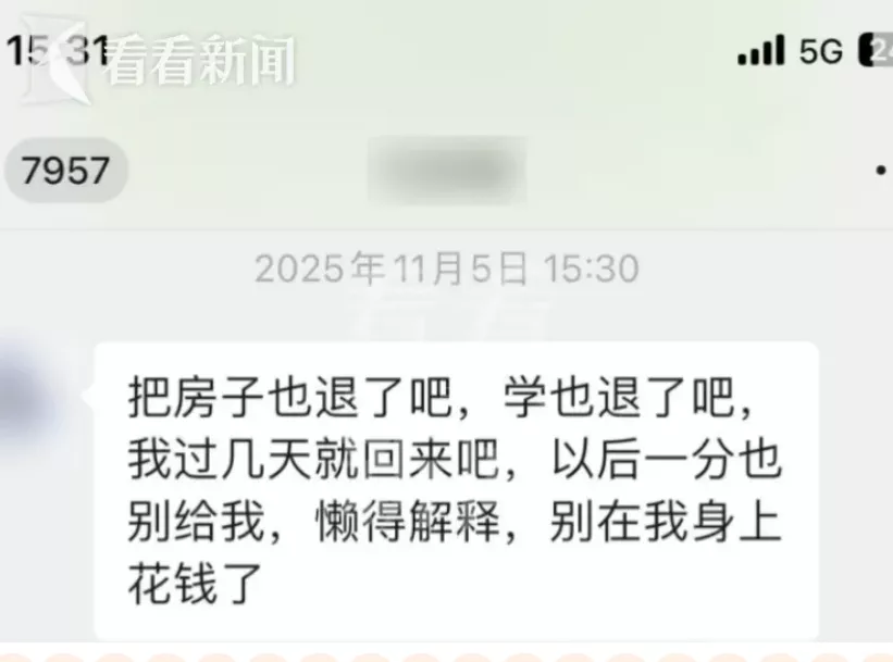 警惕的全女士顿时心生疑虑:儿子不会遭遇情感诈骗了吧?于是,她拒绝了出资请求。不料这一决定竟激起儿子的强烈反应,他不仅扬言“不用你的钱,我自己打工还债”,更表示将提交退学申请,准备回国工作为女友还债