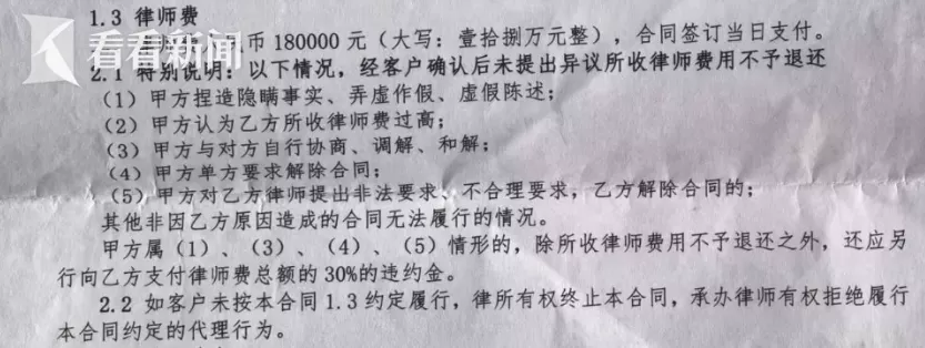 对此,律所工作人员表示,“我们已经没要你30%违约金了。”——这意思是已经“手下留情”了?