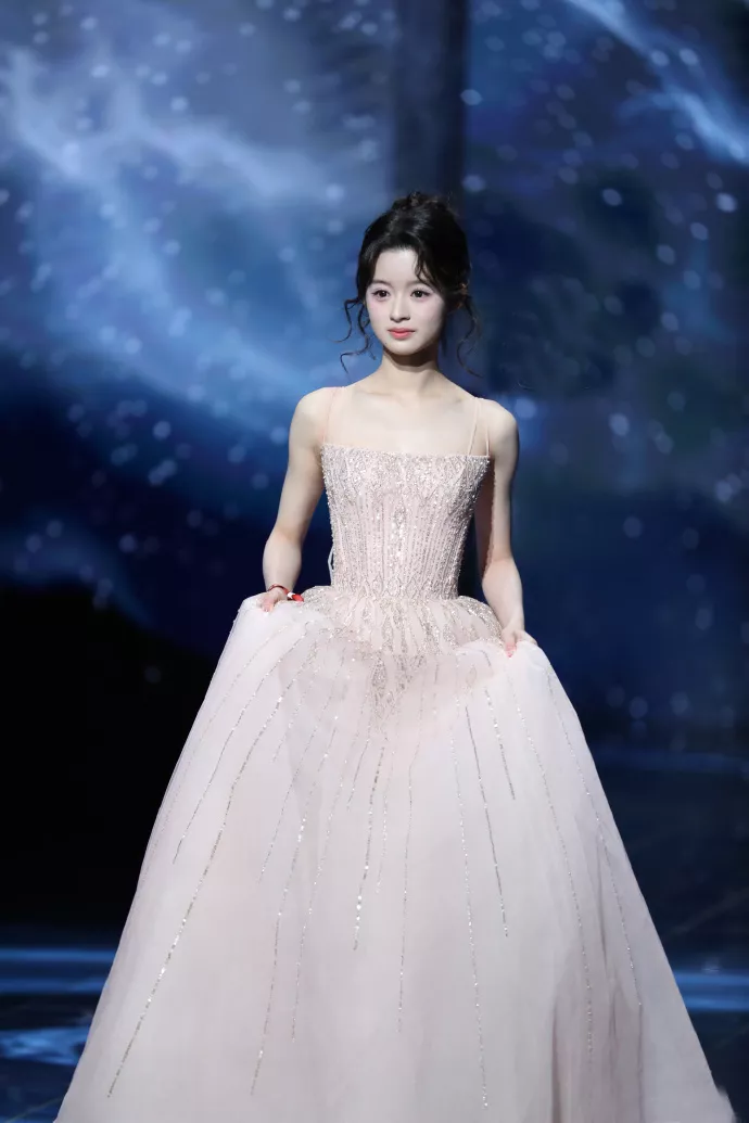 黄杨细钿一袭粉色长纱裙亮相红毯,仙气飘飘宛如洋娃娃,妆造充满了灵动感,满脸的胶原蛋白确实能扛得住高清镜头。