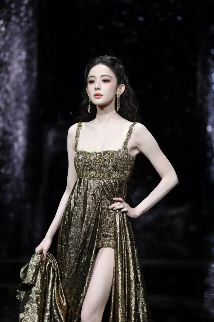 在更换了造型团队后,娜扎在红毯上可以说如鱼得水,每一次登场都预定热搜版面。这一次的红毯,她身穿金色星光长裙重磅亮相,鎏金裙摆自带高光,肩颈线和长腿优势完美呈现,如同从神话中走出来的女神,每一帧画面都高级感十足。