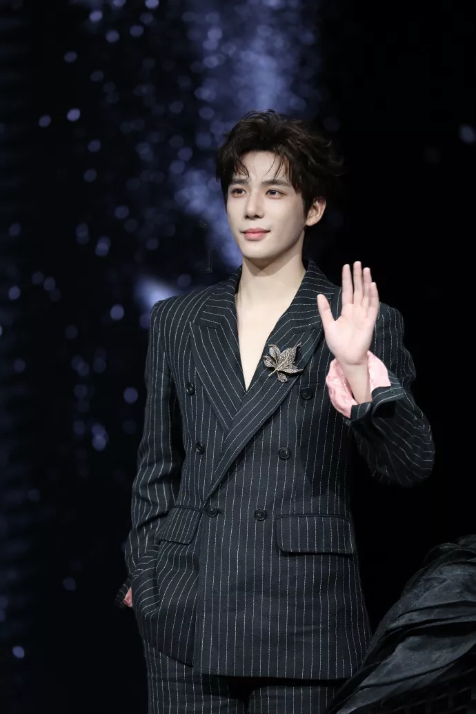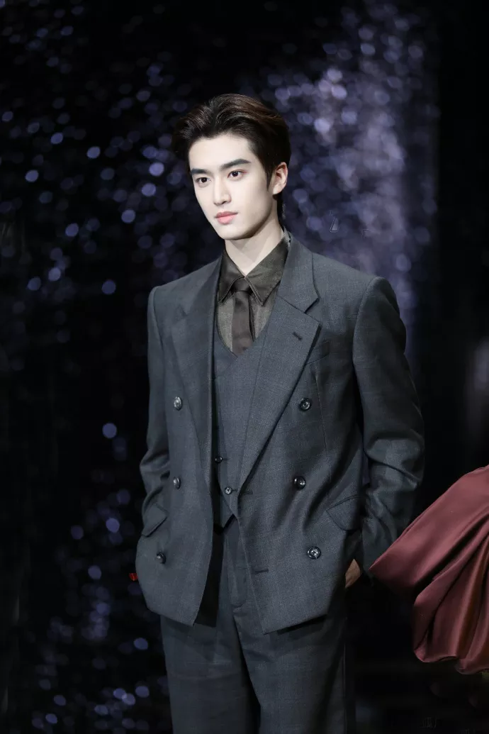 西装三件套加上大背头,化身复古少爷的张康乐,在一众小生中格外耀眼,整个造型充满了绅士风范。