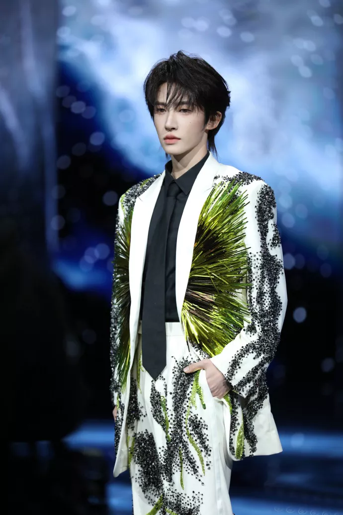 在男明星都喜欢出安全牌的红毯上,黑白西装几乎成了标配,而一直主打创意的刘宇,这一次又让人眼前一亮,绿白西装独树一帜,妆造也充满了生命力,立春刚过,万物复苏