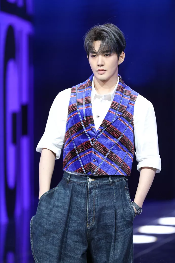 邓为同样不走寻常路,红蓝色条纹马甲、白衬衫、牛仔裤,看似随意的穿搭,实际上充满了巧思,不仅英伦范儿十足,也把自己的身材优势展示出来了。