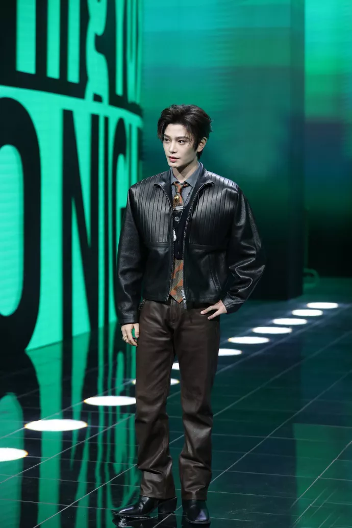 丁禹兮利落皮衣搭配“晒伤妆”,整个人变身复古绅士,无论是领带还是外套都有满满设计感,时尚表现力方面确实很突出。