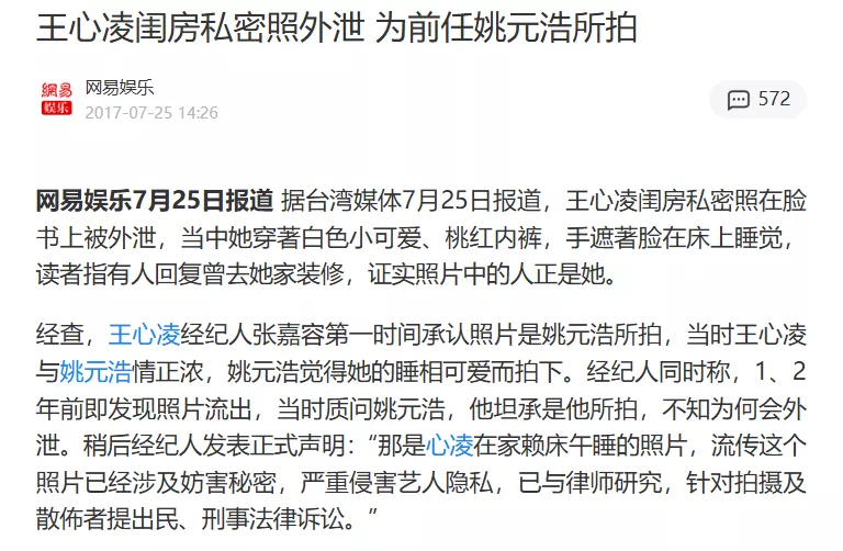 姚元浩承认照片是他拍摄的,但不是他外传出去的,不过最后,在舆论的压力下,他公开道歉。