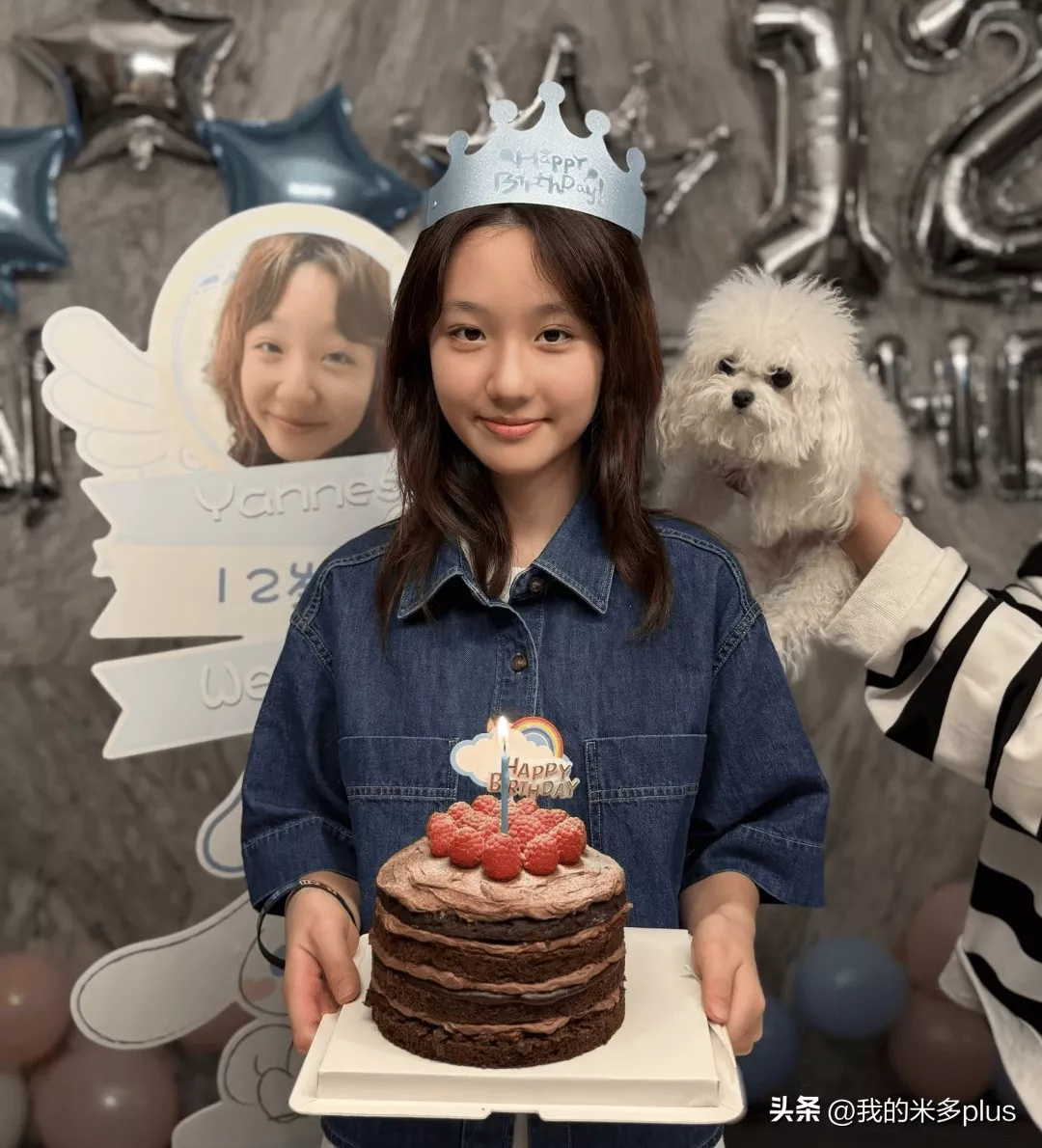 彤彤从小就被外界称赞长得清秀,这次生日上的照片展现出她渐入青春期的模样,脸上带着些许稚气却也日渐端正。她的双眼皮和细腻的五官尤为引人注目,整体给人一种邻家女孩的感觉,十分自然。桌上摆着的巧克力蛋糕,是妈妈洪欣特意为她准备的,彤彤戴着生日帽,笑容甜美,还和家中的宠物狗一起出镜,画面生动有趣。身披好基因的她,不经意间流露出与生俱来的气质,让人觉得她有着明星的潜质。