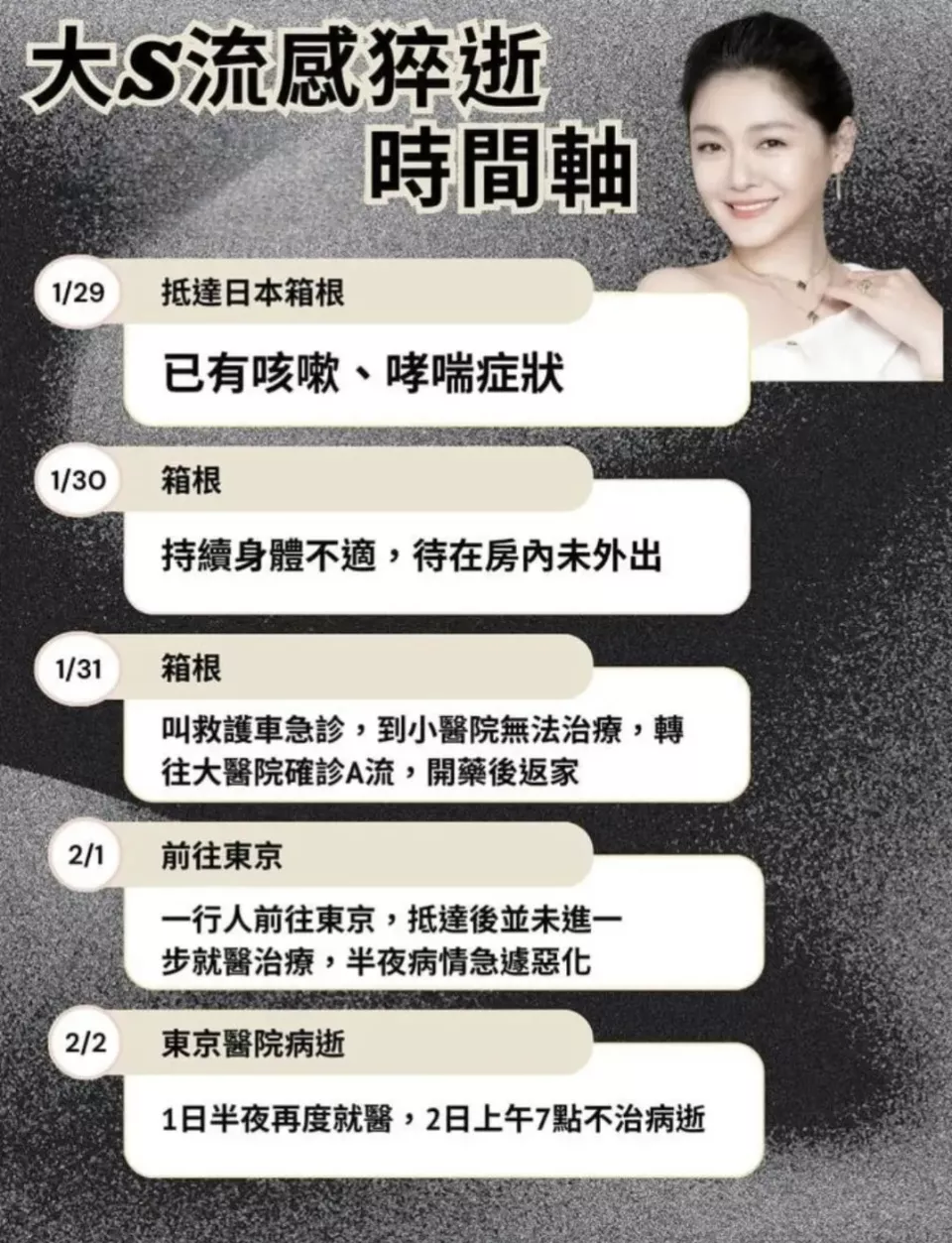 2025年1月29日,S家抵达日本,大S有了咳嗽、哮喘的迹象;
