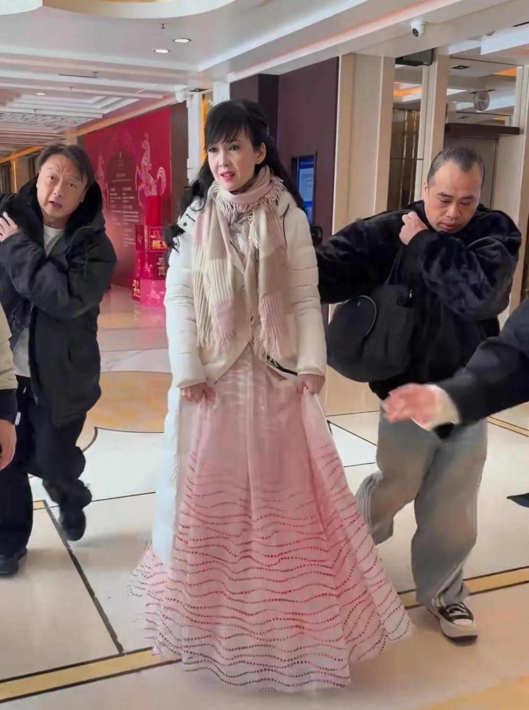 梁咏琪还比较活跃,很多音综和晚会都能看到她,她保养得真不错,看起来跟年轻时没太大变化。彩排画面里,梁咏琪的粉色裙子是她之前出席活动时穿过的,看来是自己准备的衣服。