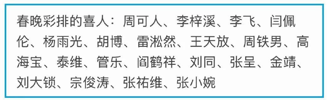 节目审查阶段,已经上过28次春晚的蔡明也曾参加彩排,但此后就没有再出现。语言类节目一般都要参加好几次彩排,所以蔡明也有很大可能被淘汰了。