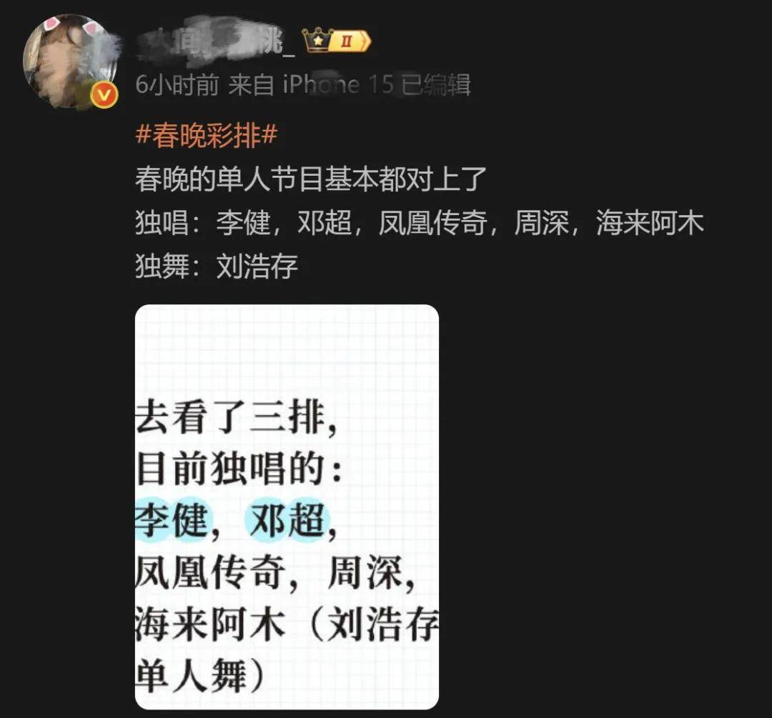 根据在第三次联排现场的网友透露,能独唱的明星或组合有李健、邓超、凤凰传奇、周深和海来阿木。