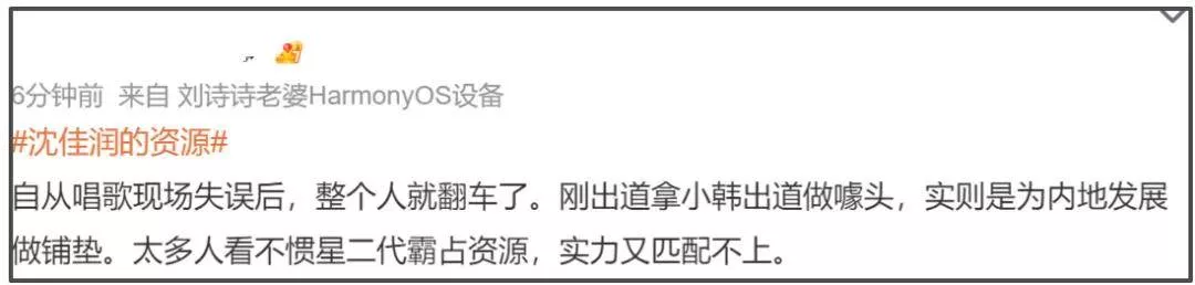 随后,“沈佳润的资源”这一话题登上了热搜榜单。一方面,大家觉得沈佳润作为星二代霸占许多好资源,实力却匹配不上,让人看不惯;另一方面,大家认为当初沈佳润在韩国出道,释放出不抢占内娱资源,去赚外国人钱的信号,现在却频繁在内娱活动,大家觉得被欺骗了,让她去韩国搅合,放过内娱。