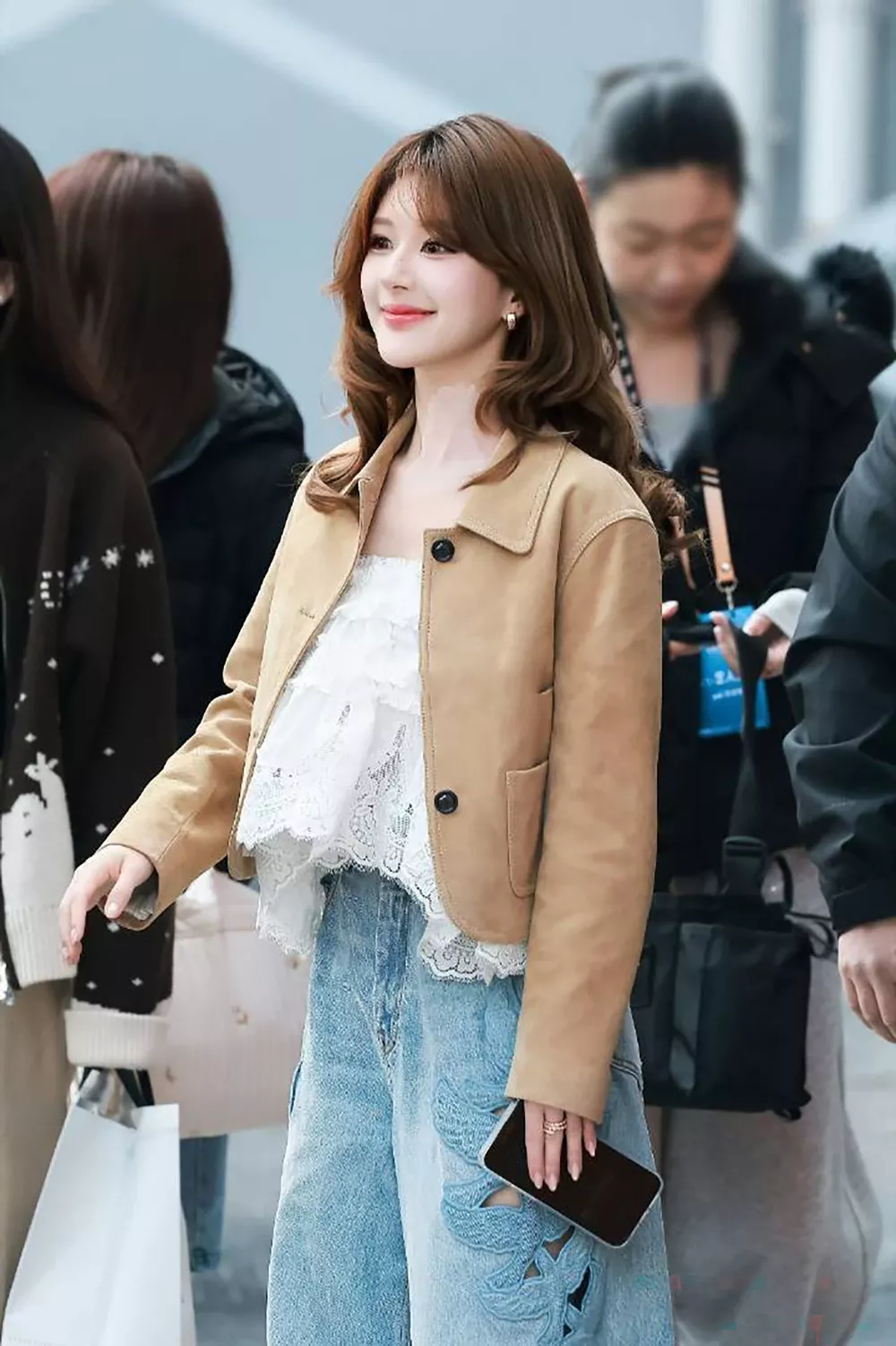 赵露思下车看到粉丝后就露出了标志性的甜美笑容,还和现场粉丝进行了挥手和比心等种种互动!