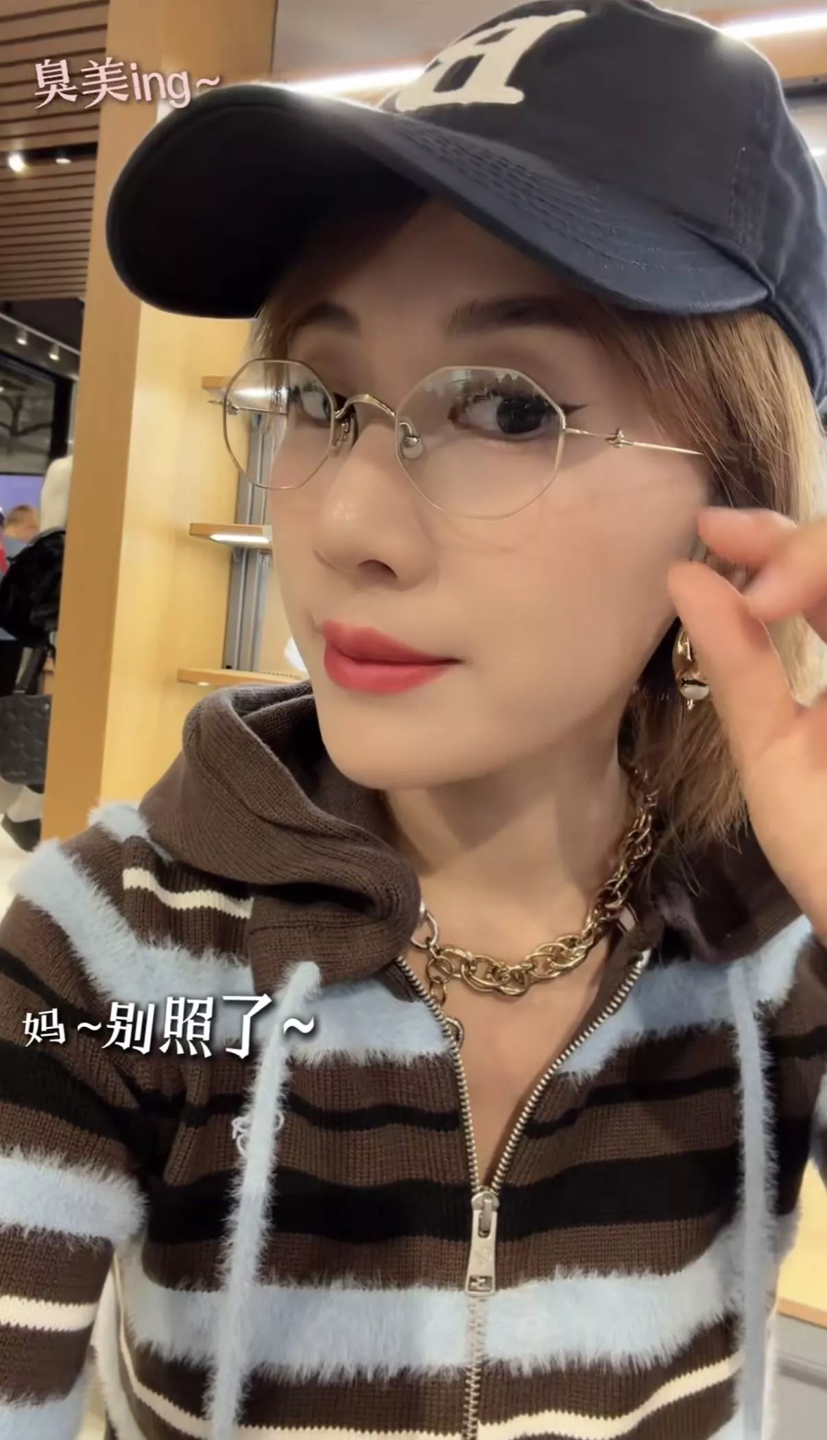 虽然大儿子没有出镜,但是一听声音就是小男生。催促她:妈!别照了。果然是男生都一样,容忍不了女生逛街啊。