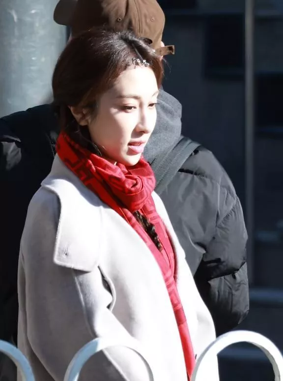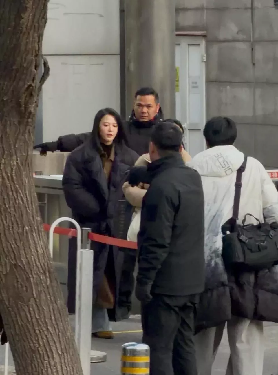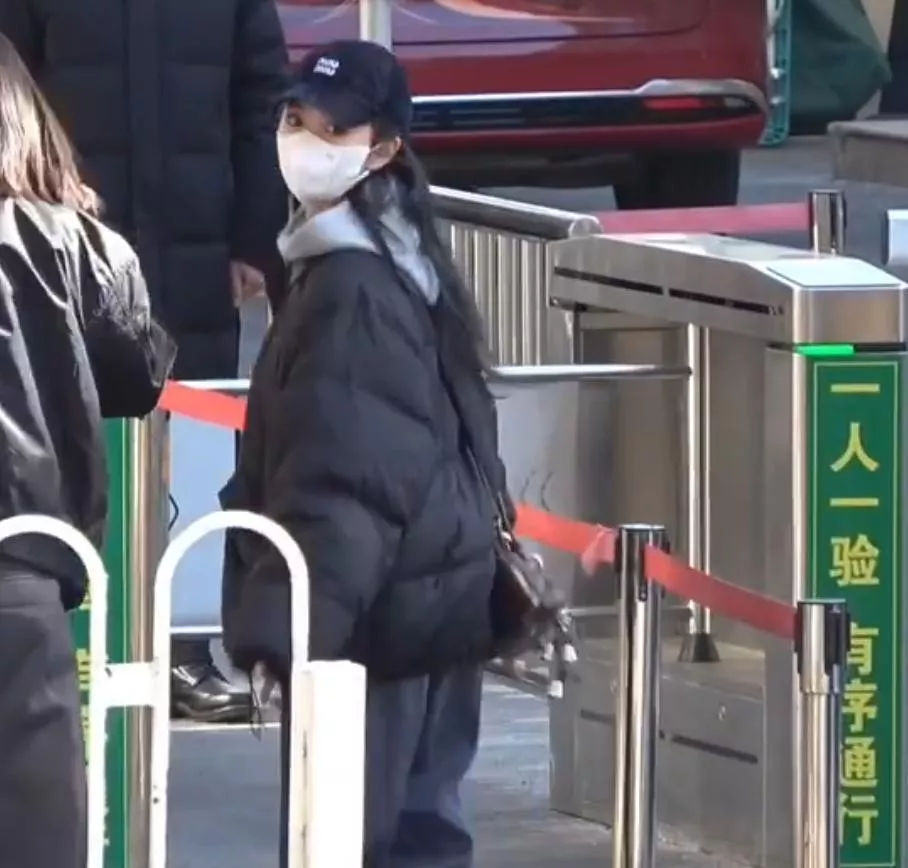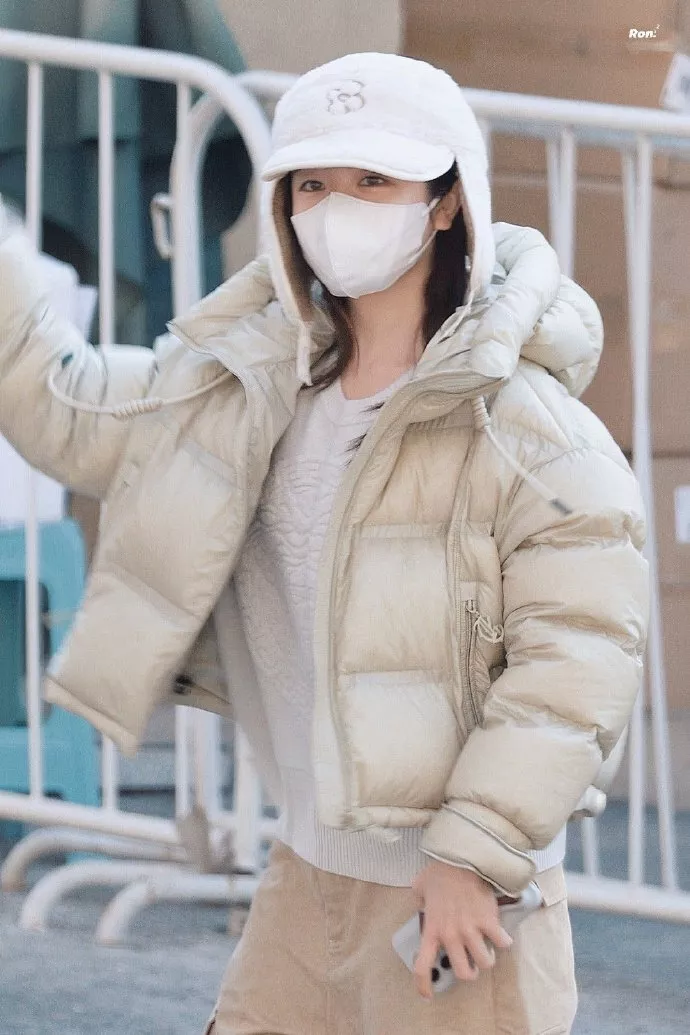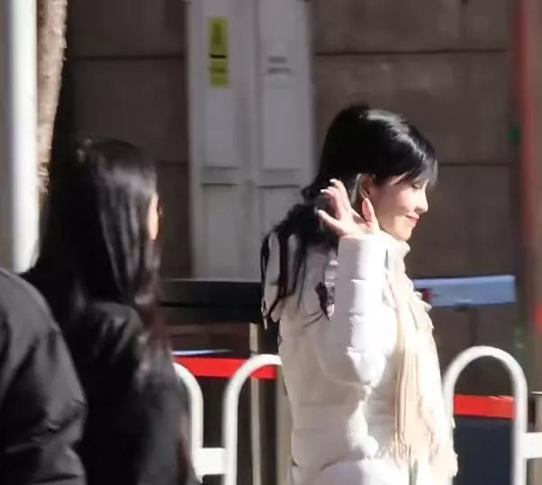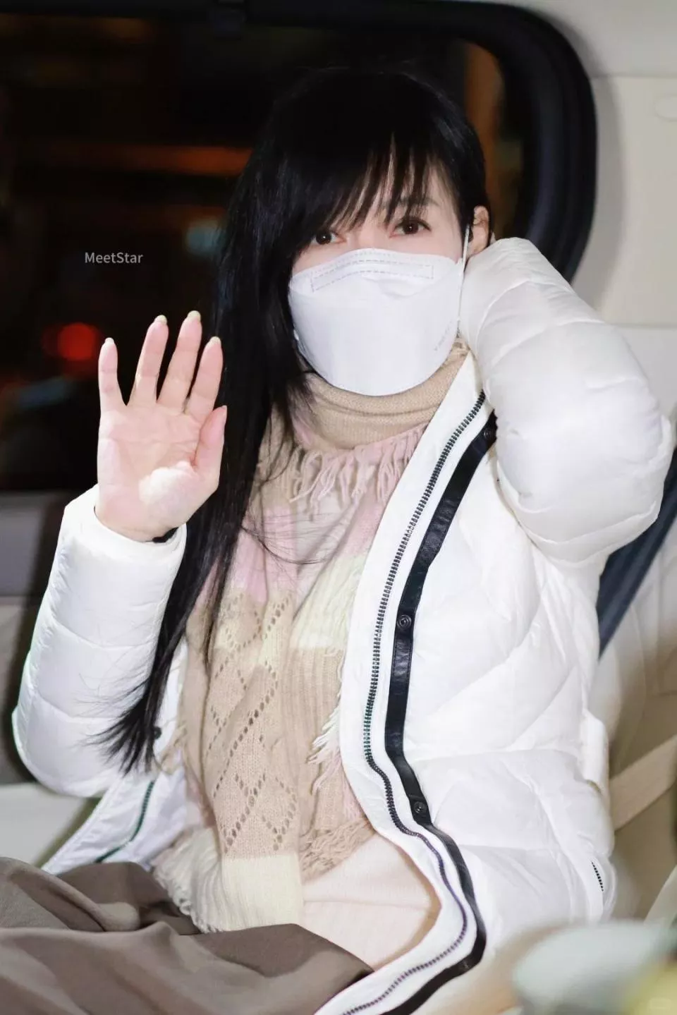 女神穿着超长白色羽绒服,皮肤又白又亮,看上去温温柔柔的,身上还是有几分“玉女掌门人”的影子。