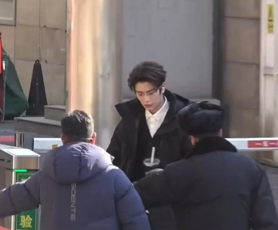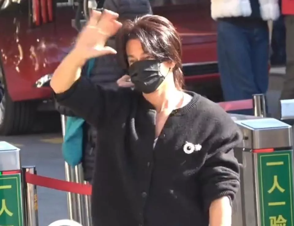 汪苏泷双手插兜一身黑,与粉丝打招呼后快速进入大楼,但还是能看清楚他做了妆发。