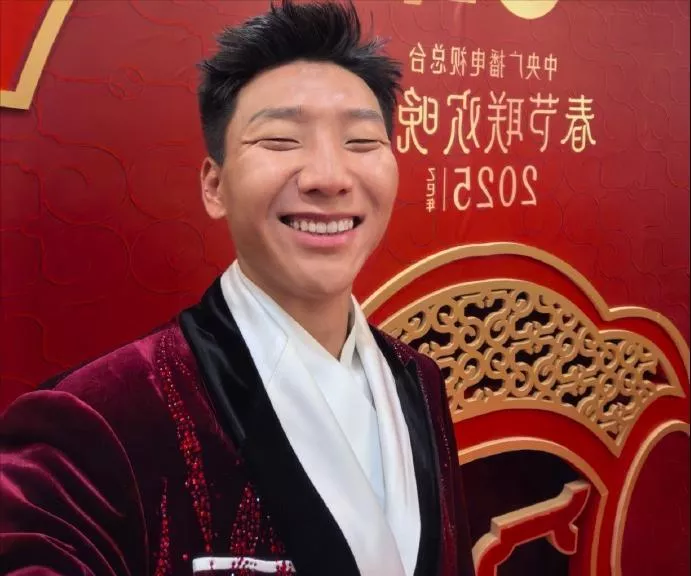 阿如那一身黑戴着墨镜,看上去很不好惹的样子,但他之前上春晚时是这样的: