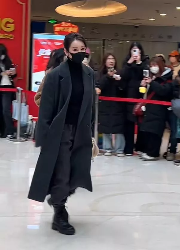 咱们的大衣爱好者,韩风大女主秦海璐又换了一件黑色大衣走来,依旧“姐感”十足,走路带风,眼妆非常亮眼。