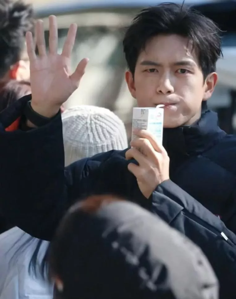 李现喝着牛奶嘟嘟囔囔,却走出了六亲不认的步伐,也太有反差萌了。露出半截的红色裤子好喜庆,里面应该是一整套红色西装。