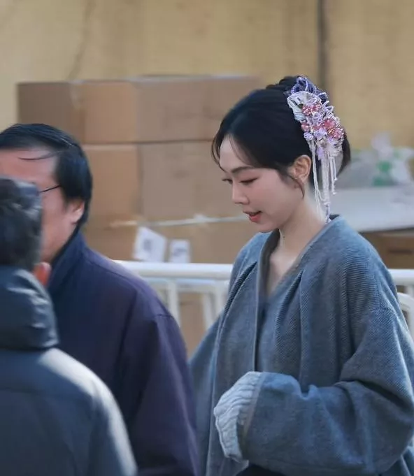 薛凯琪已经多次妆造齐全来彩排,她面色粉嫩如桃花,头上的发簪也好美。整个人被包裹在宽大的羽绒服里,小碎步走得好像一只企鹅。