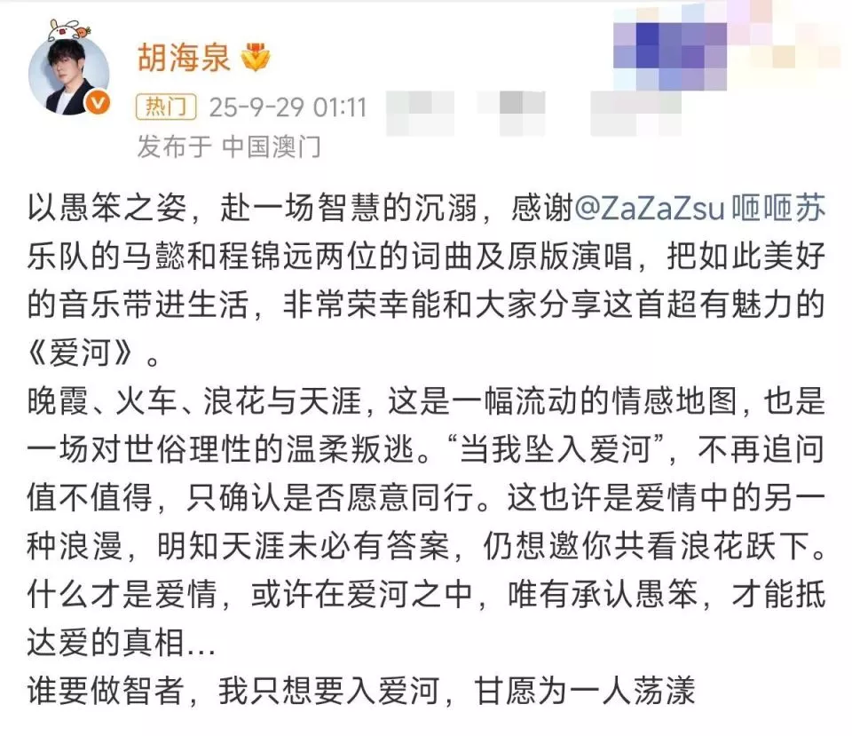 对于这支乐队,或许很多人的印象还留在胡海泉在社交平台上发文力荐的那首《爱河》。