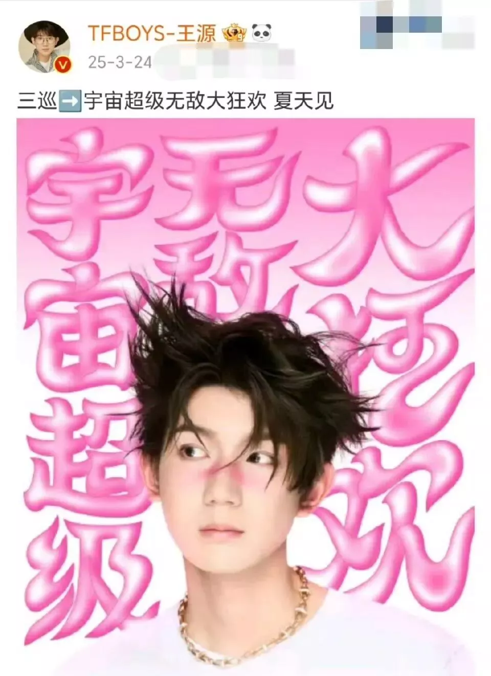 2025年,王源在巡演舞台上,也以颧骨至鼻梁的粉色腮红晕染为特色妆容,也让人看见了1998年的回响。