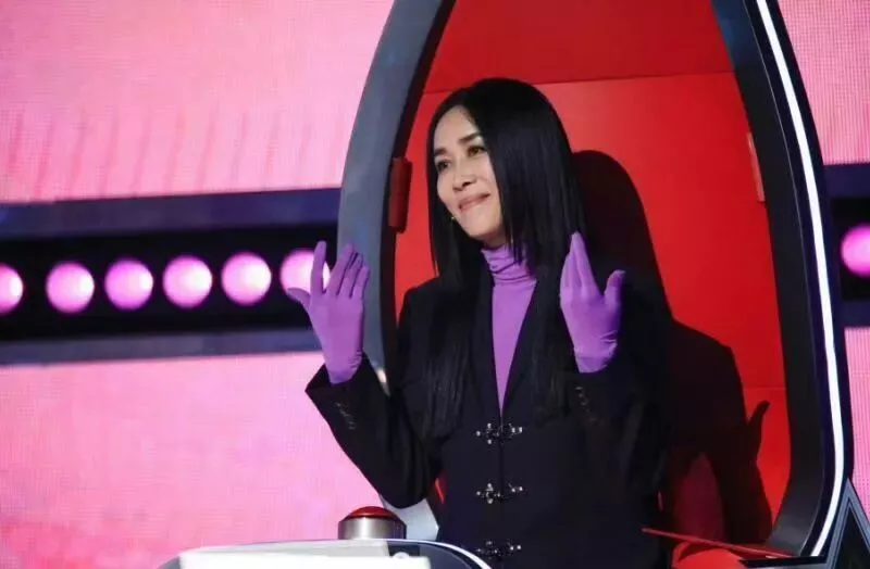 2019年《中国好声音》的舞台上,那英以黑色外套搭配紫色毛衣,同样将紫色手套当作时尚单品,只是穿出了不同的feel。