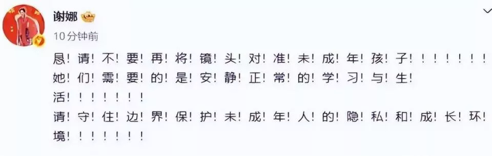 中午12点17分,谢娜的微博更新了。 没有配图,只有一段被68个感叹号切割开的文字:“恳! 请! 不! 要! 再! 将! 镜!