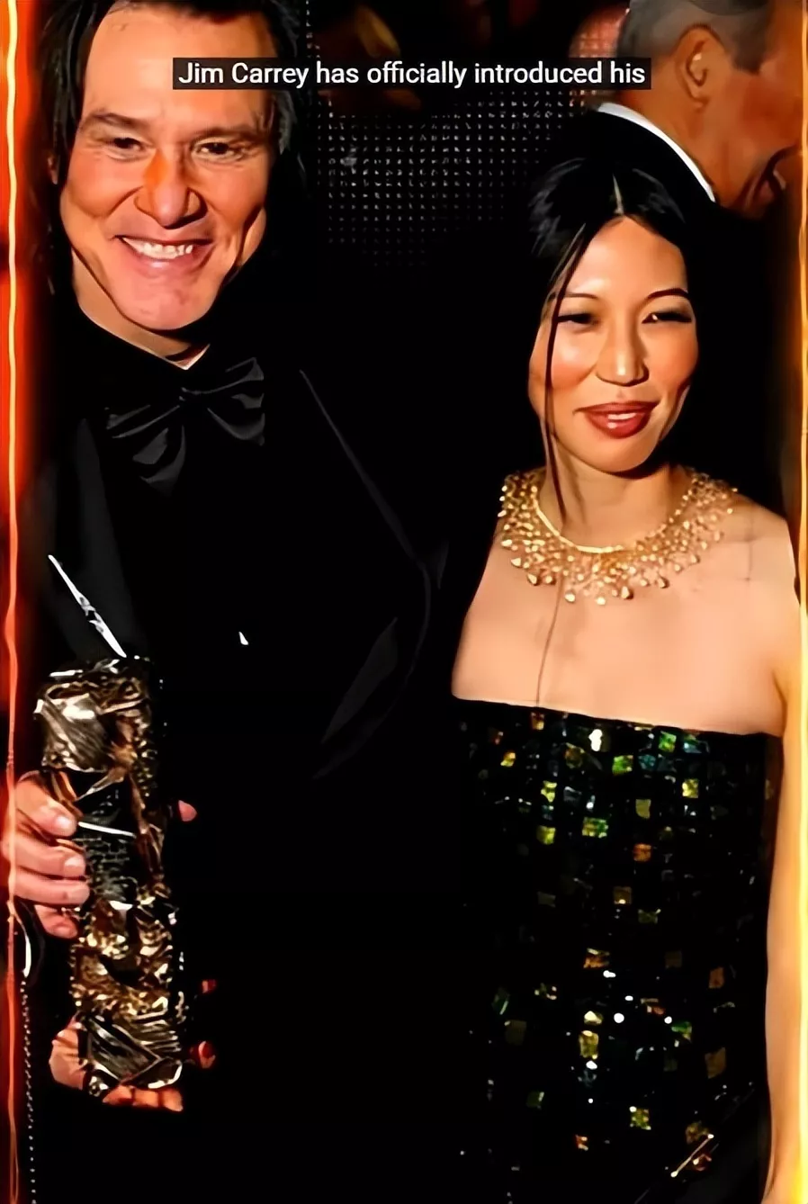 难得看到64岁的金凯瑞在这么重要的公开场合公开并大胆对女友示爱,他向亚裔女友大方表达爱意,这是他多年来从未有过的公开举动。
