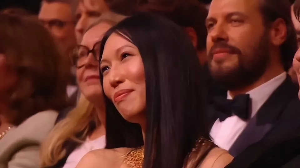 金凯瑞上台后他全程用法语发表致辞,除了缅怀已故父亲,还首次公开了亚裔女友Mina(敏雅)。