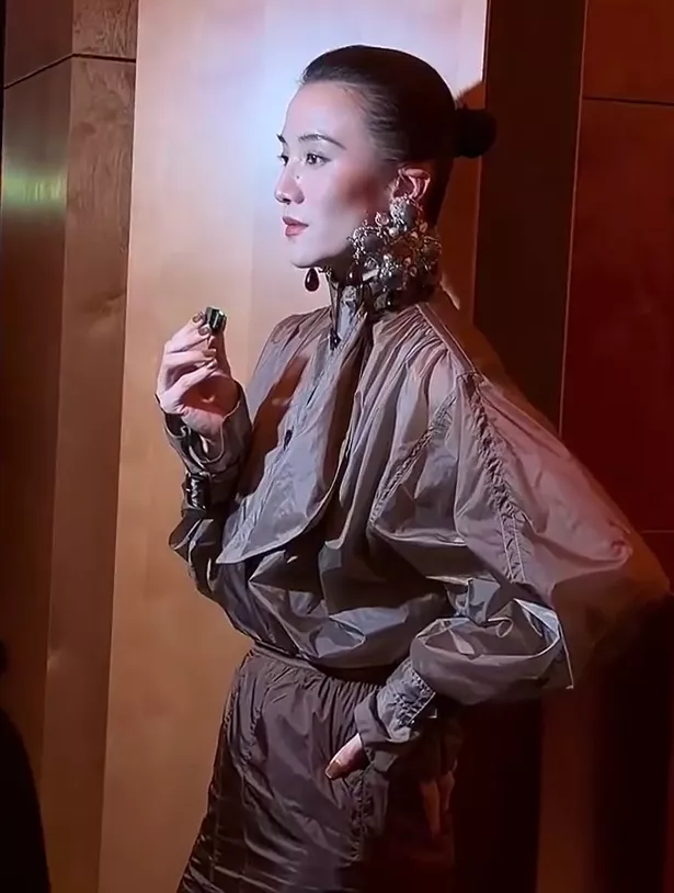 比如这次她就选择了一件款式很有设计感的聚酰胺花结衬衫,搭配上铅笔裙,还有特别显眼的宝石耳环和漆皮尖头高跟鞋,这种冷御摩登风格在内娱很少有人能驾驭。