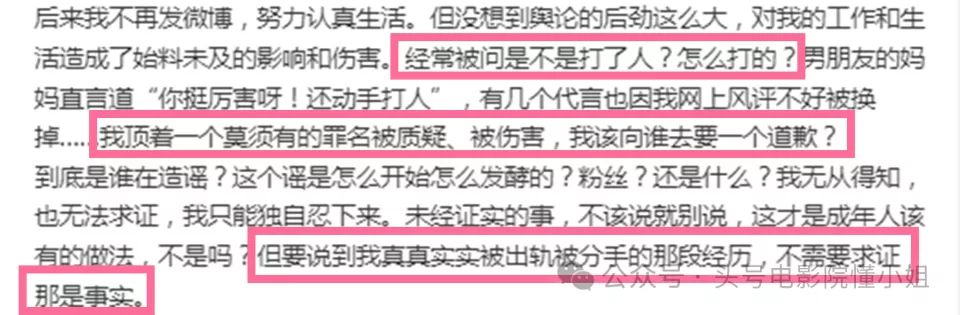 更扎心的是她对“掌掴女方”传言的澄清。