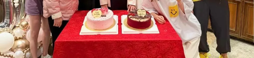生日当天的两个蛋糕,一个写着“by囡囡阿仔”,另一个写着“IN凡”,一看就是孩子们一起送了一个蛋糕,另一个蛋糕也不像是女婿窦骁送的。