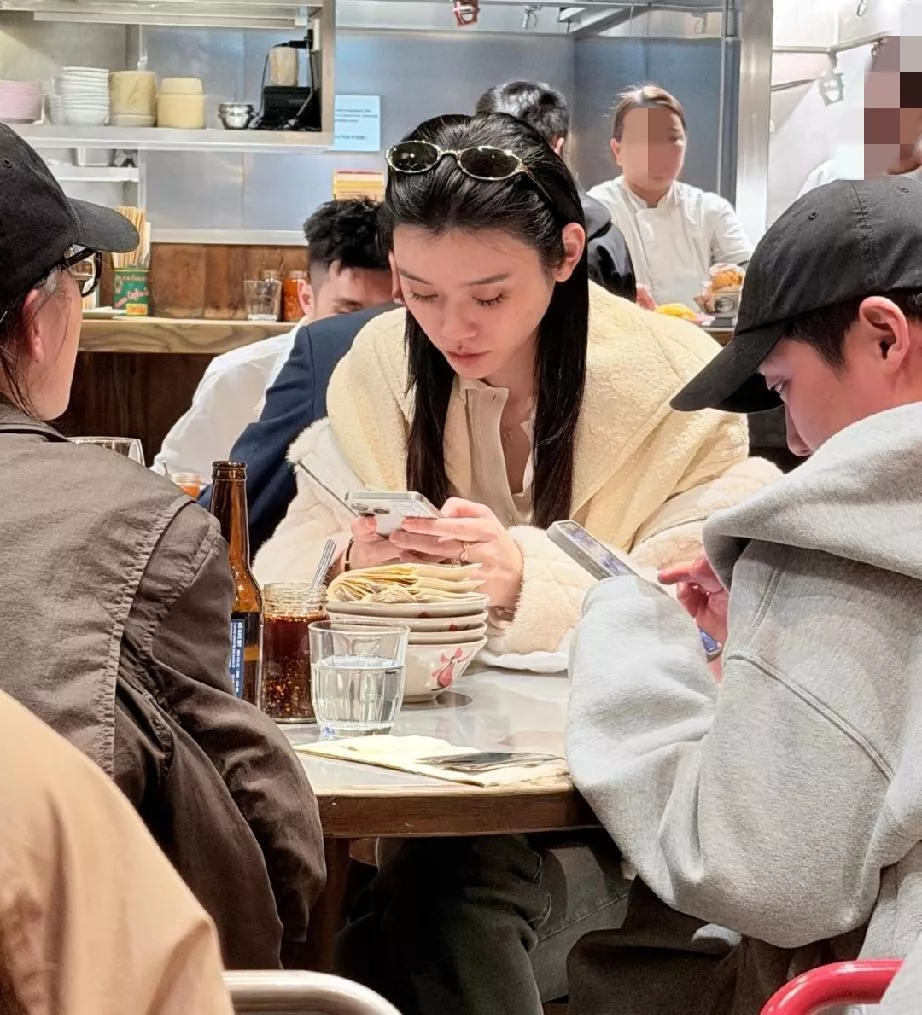 月11日还有网友拍到她在香港中环餐厅聚餐,素着脸露出眼角小斑点和黑眼圈,穿着白色貂皮外套却扎着丸子头,手边还放着个粉色史努比暖水杯,贵气和接地气完美融合。