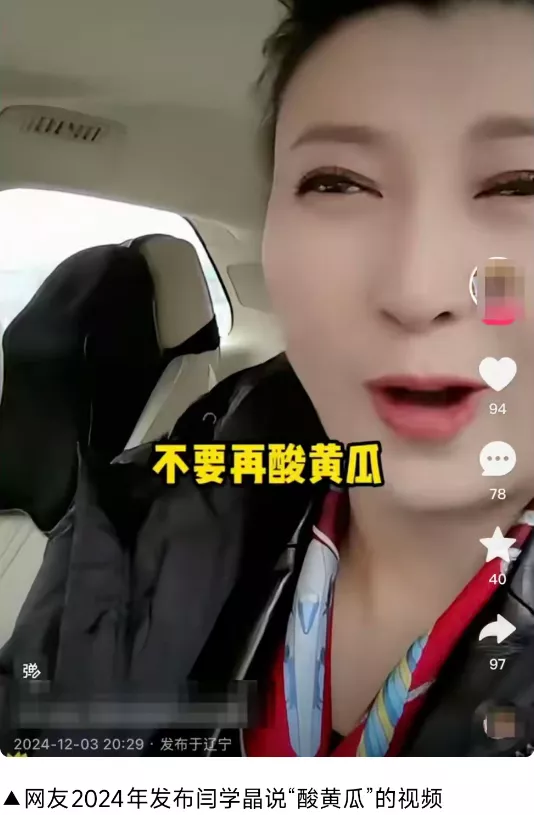 “酸黄瓜”视频是2024年12月的直播切片,当时闫学晶在和直播间观众开玩笑,却被人恶意剪辑后当成2025年12月回怼网友的视频发布。