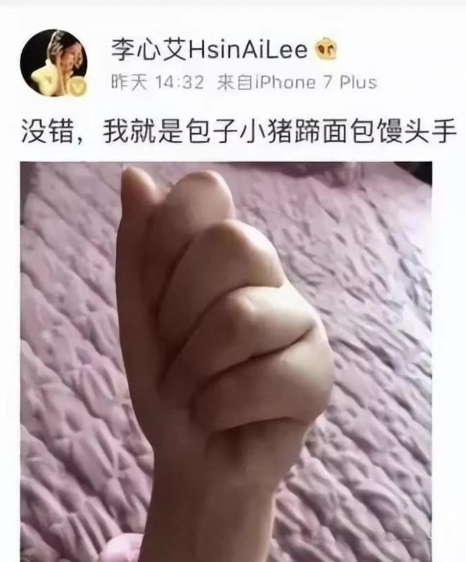 李心艾特地发文回应她的手天生就是这样,还自我调侃长了一双包子猪蹄面包馒头手。