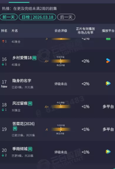 甚至,连收视率都低至1.5,才结束的《我的山与海》都超过2了,可见真的是哪个年龄阶段的观众,都没说服。