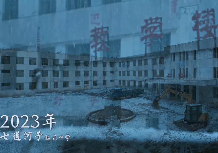 在刘潇然的讲述中,出现了密林,奔跑的两个小女孩,神秘莫测,又极具美感的画面,镜头一转,又变为破败的学校。