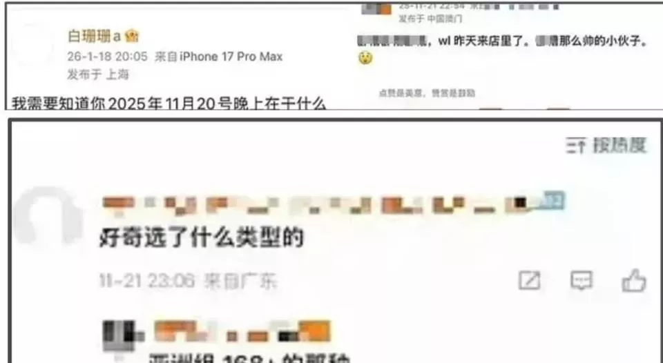 她先点赞一条疑似夜场工作人员发布的聊天记录,内容提及“WL昨天来店里”和“亚洲168+组”等暗语,随后用大号发文“何猷君出轨了”,未提供任何证据。