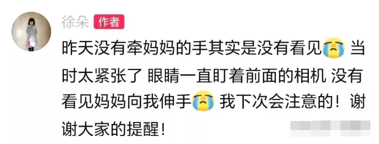 两天后,徐朵在社交平台发文回应此事,称自己并非故意回避,因是第一次参加如此大型的活动,内心十分紧张,注意力全集中在前方的相机上,压根没注意到妈妈伸手。她还表示后续会多留意这类细节,同时感谢大家的提醒与关注。