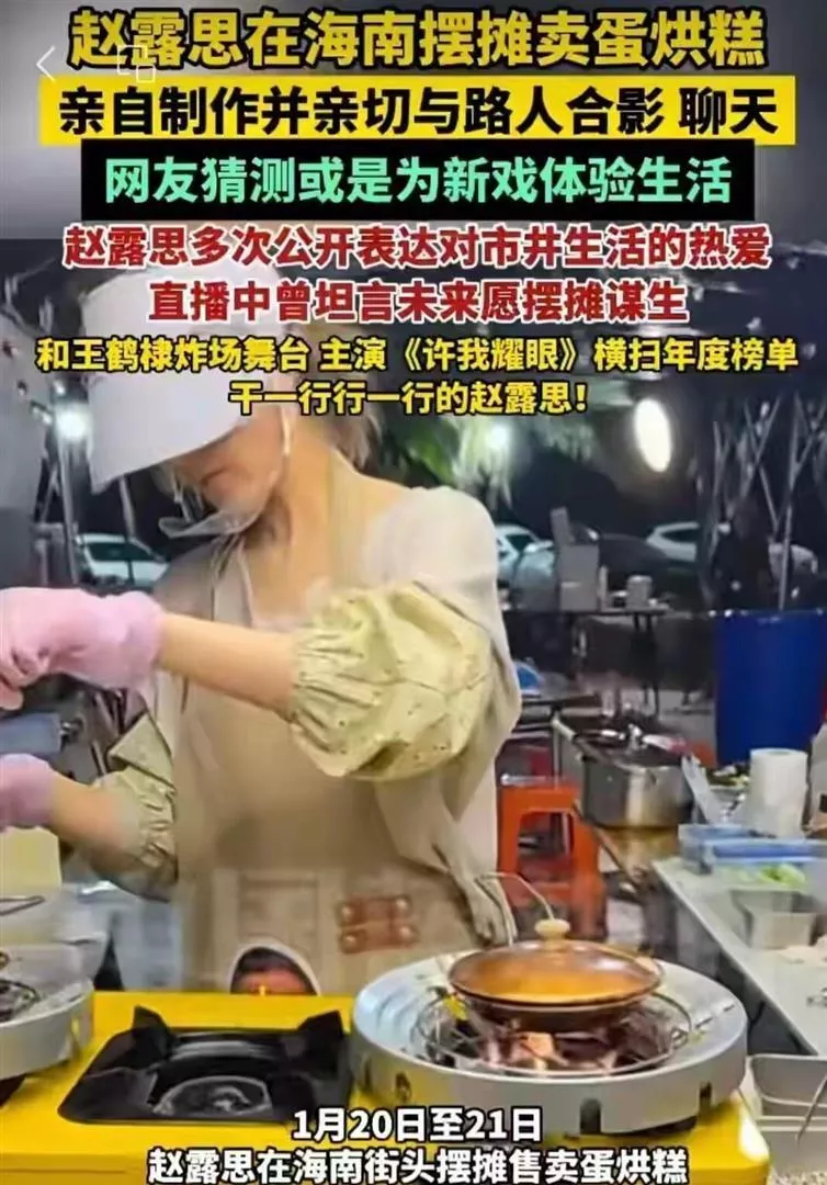 前几天还在澳门演唱会舞台上光芒四射的赵露思,转头就蹲在海南夜市的简易大棚下,系着围裙卖起了蛋烘糕。全程素颜,一身行头最贵的是一件350块的短袖,干活手法还挺像那么回事。这和咱们印象里出入高级场所、一身奢侈品的明星,差距可不是一星半点。