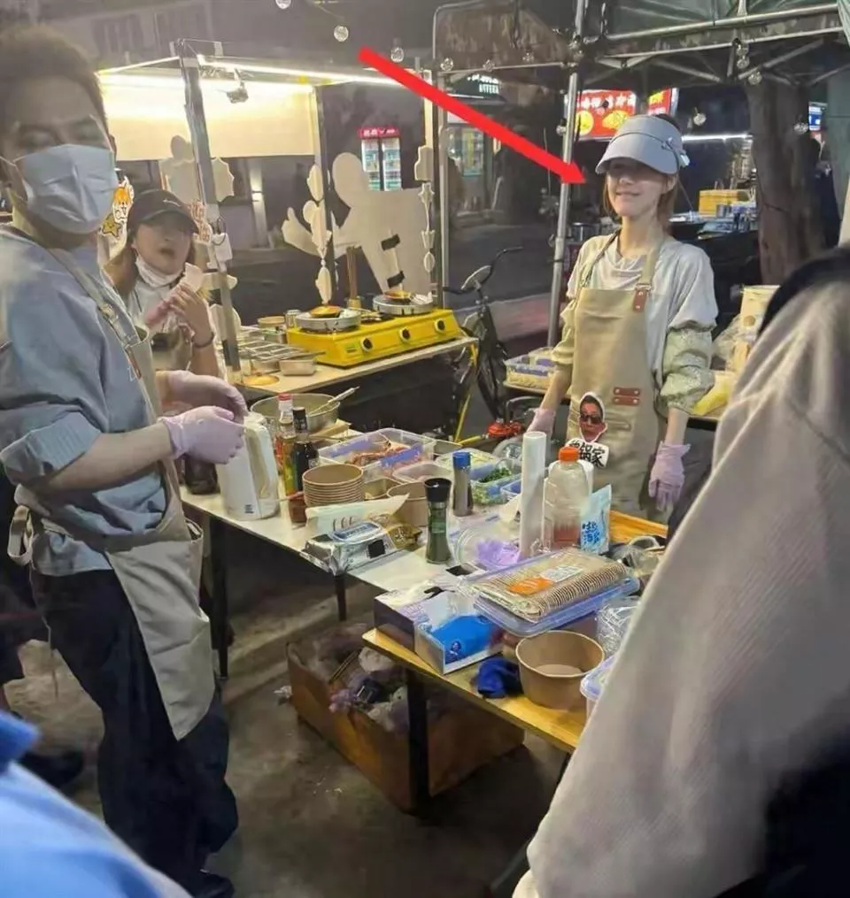 谁也想不到,这个看起来和周围摊主没啥区别的姑娘,会是赵露思。