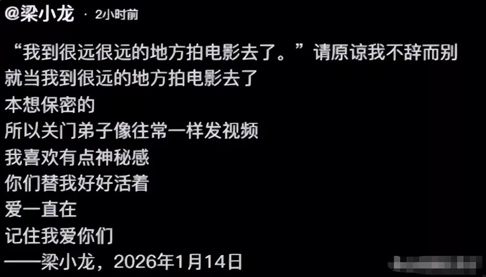其实,对于梁小龙的离世,大家都表示很突然。