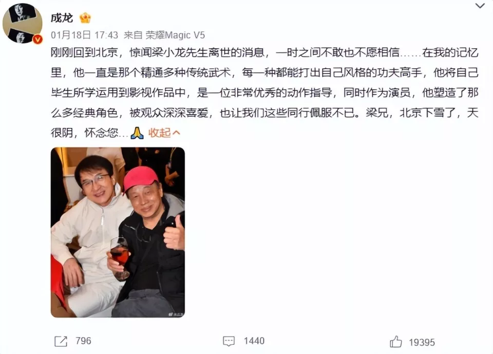 因为就在1月13号,也就是他去世的前一天,还有网友分享了与梁小龙的合照。