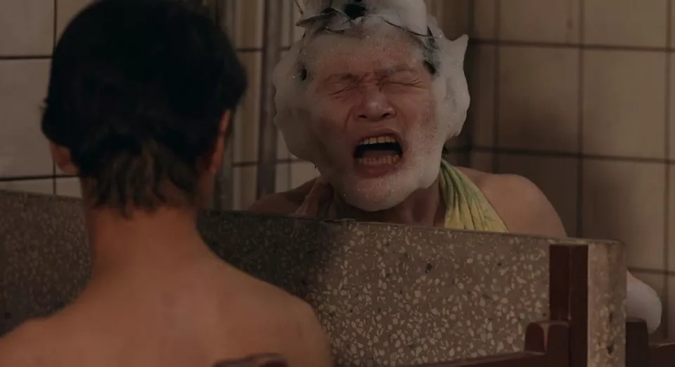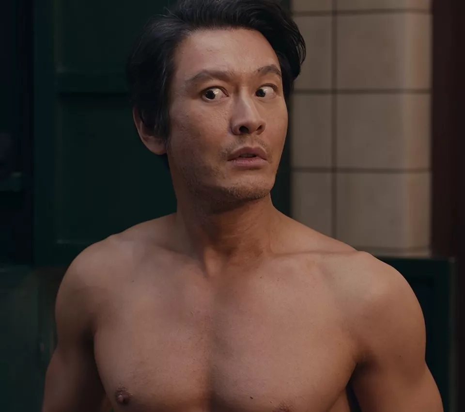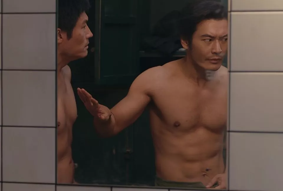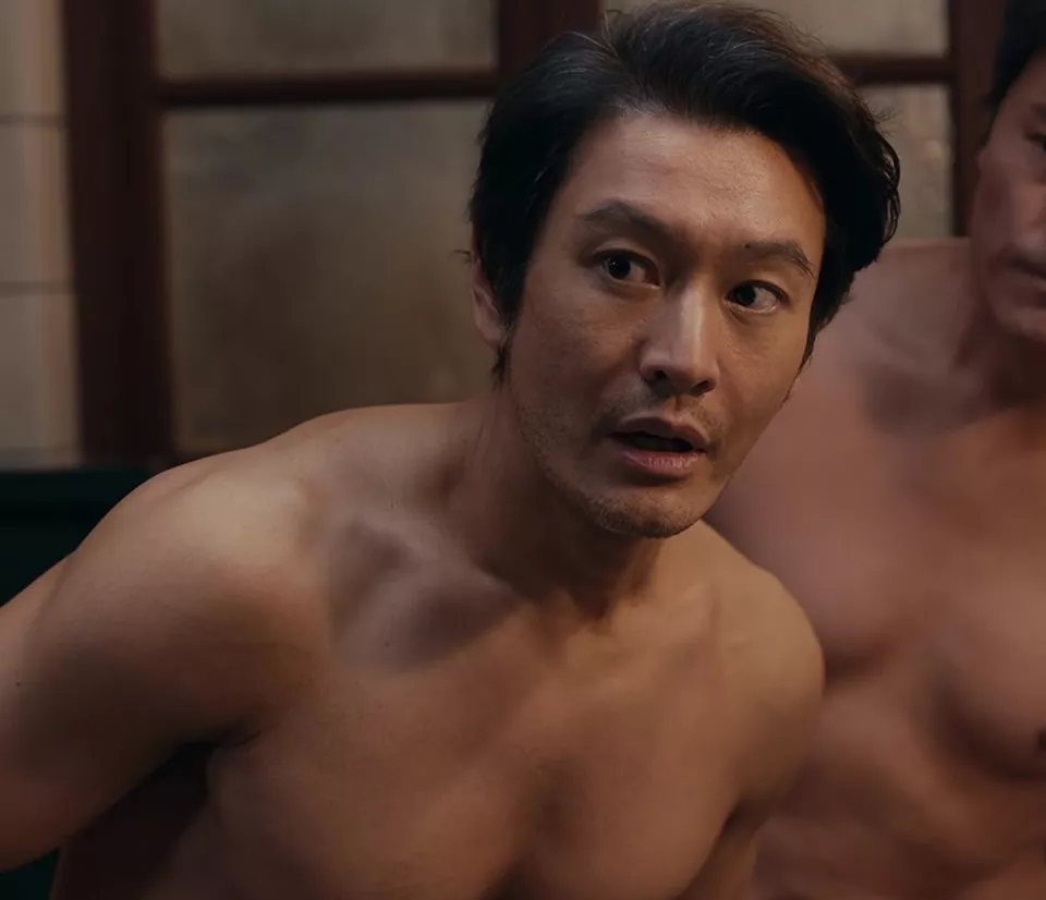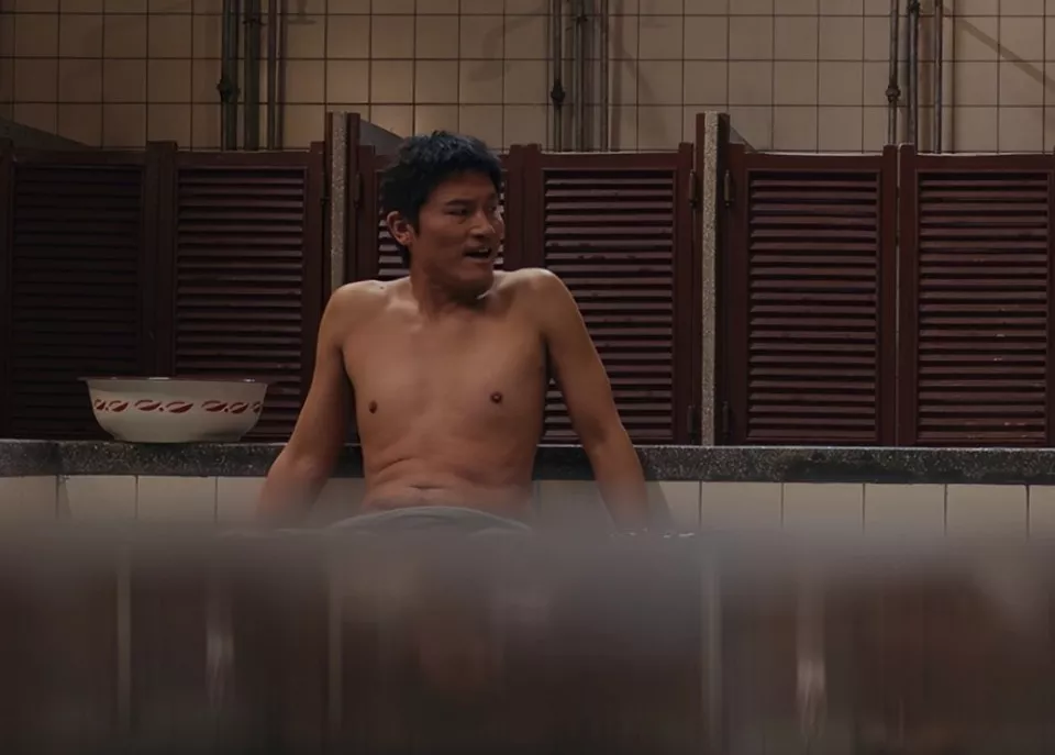 饰演谢春来的陈明昊身上的赘肉不少,坐在澡堂边上往后一仰,肉都堆起来一大块,整个人看着虎背熊腰的。
