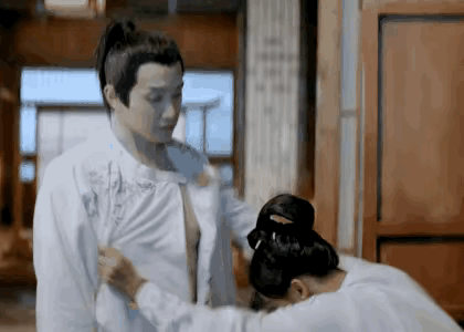 范世錡在古装剧中,有一场与女演员的对手戏,对方不小心扒开了他的衣服,露出了前半身。