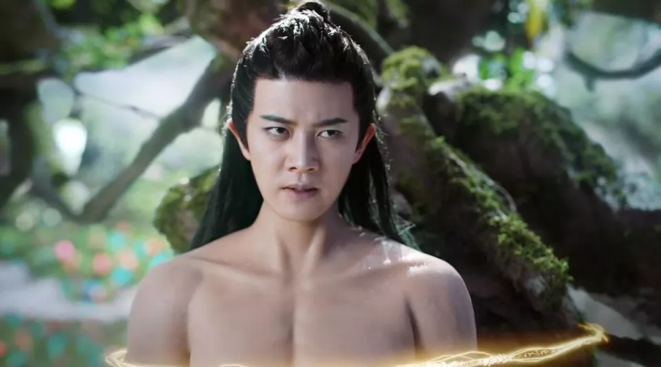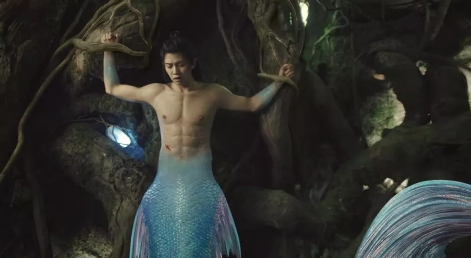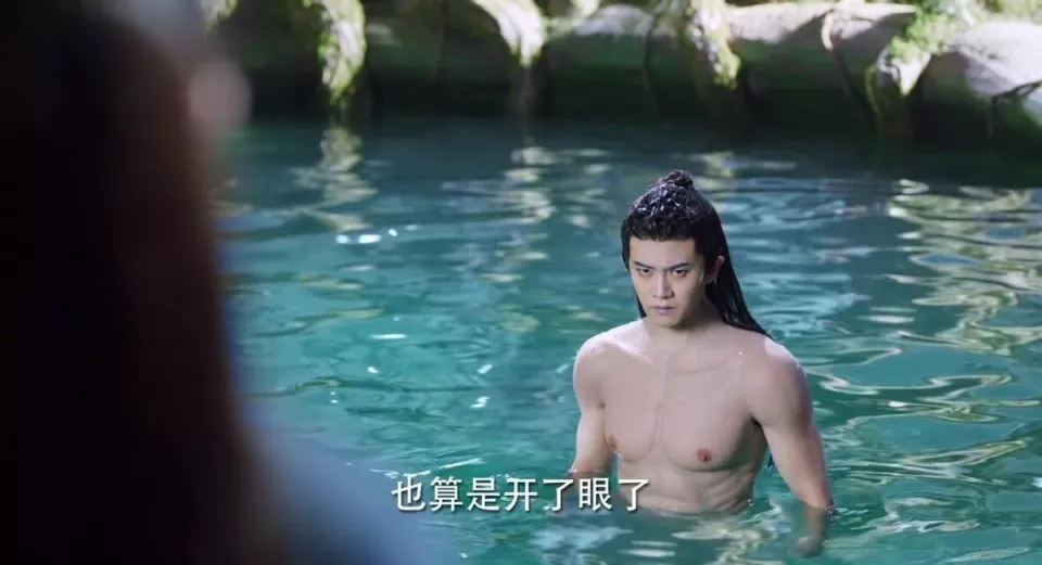 《与君初相识》中,任嘉伦饰演的鲛人长意,出场时人身鱼尾一丝不挂,实际身材一览无余。