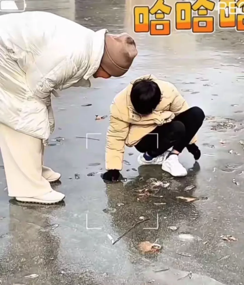 等俩孩子到了北京后,张兰就带着孩子出去玩了,感受一下北京的冬天。