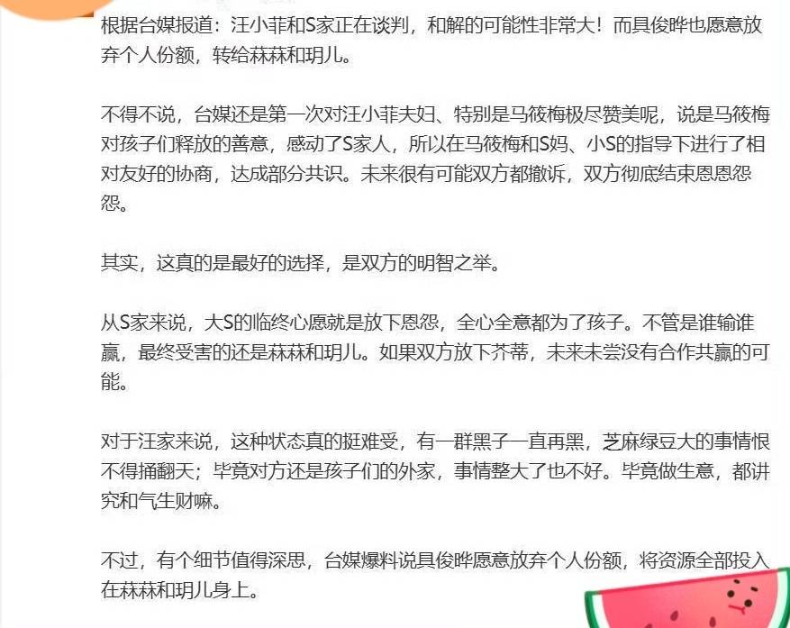 大S家人和汪小菲要和解了?具俊晔也要把大S遗产转给两个孩子了——引言。