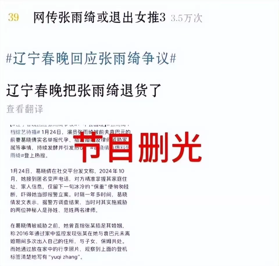 最新消息,张雨绮受到前夫袁巴元前妻葛晓倩的举报,涉嫌代yun、插足等多个负面内容,导致被合作的品牌方火速删除相关内容、也将缺席原本现身的辽宁春晚。